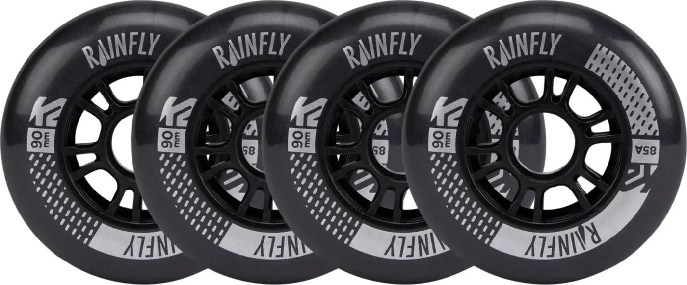 The K2 Rainfly Inline Skate Wheels 4-Pack is the perfect add-on to your skates for rainy days. The K2 Rainfly features a dual-injected composition, providing the wheel with a high grip and rebound perfectly for wet conditions.